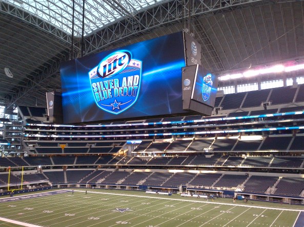 10,121 die-hard Cowboys fan filled Cowboys Stadium Thursday afternoon for the Dallas Cowboys Silver & Blue Debut in Arlington,Texas. This Cowboys practice was open to the public.