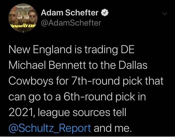 Adam Schefter reports that the Dallas Cowboys have traded for pass rusher Michael Bennett for a 7th rd pick.