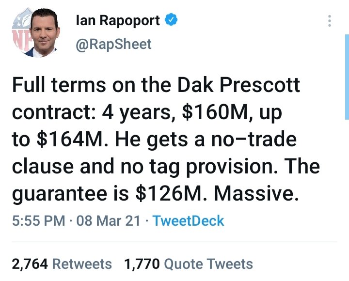 Prescott’s deal is actually for six years but it will void to four years to help the Cowboys with the salary cap. Dak’s signing bonus is 66 million which is the highest in NFL history. Congrats to Dak Prescott and the Dallas Cowboys for getting the deal done.