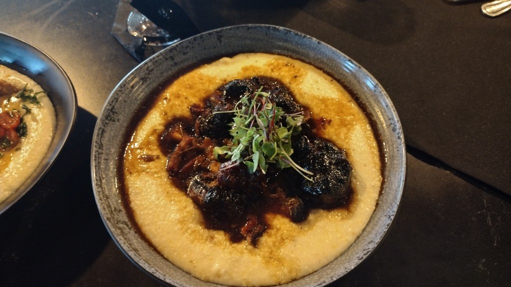 The kind of meal that makes you pause mid-bite just to appreciate it. i had the oxtails and cheese grits while my wife had the fried catfish with cheese grits.